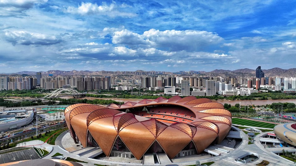 由中國十七冶承建的蘭州奧體中心,采用“飛天花舞”設(shè)計(jì)理念,建筑猶如五朵花舞動于絲綢之路上,總建筑面積46.6萬平方米,由60000座玫瑰體育場、8000座郁金香綜合館、3000座百合游泳館、3000座荷花網(wǎng)球館、蘭花運(yùn)動員公寓等單體組成。其中郁金香綜合館弦支穹頂是世界上首個(gè)吊掛大噸位斗形屏(40t)的矢跨比小于1/12的90米級大跨度弦支穹頂結(jié)構(gòu)工程。