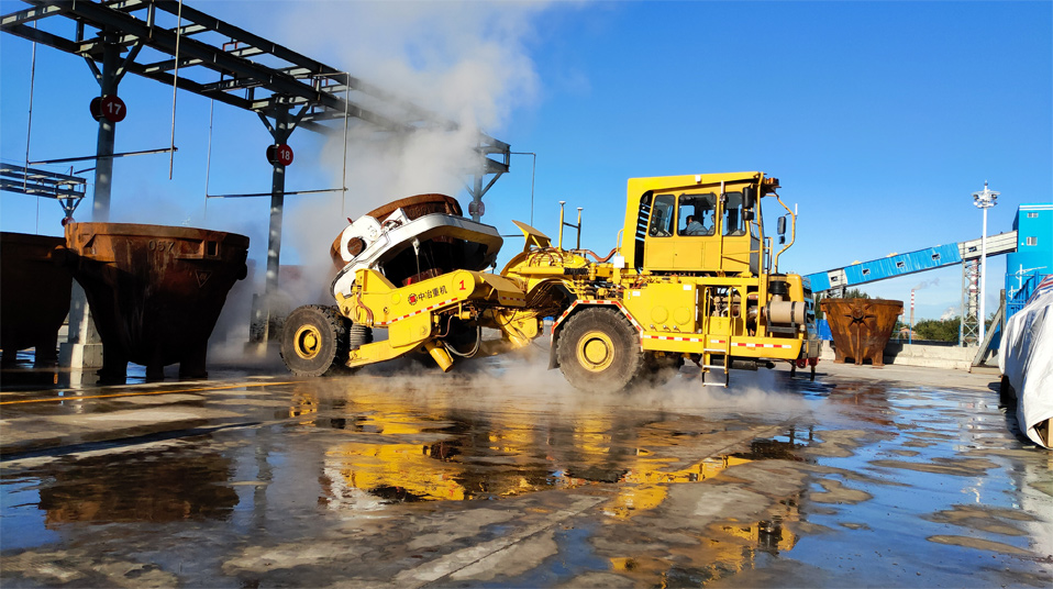 由中冶寶鋼研制的70噸鉸接式抱罐車,采用鵝頸鉸接型式,額定載重75噸,重載最高時(shí)速為每小時(shí)20公里,翻罐角度105度,最大爬坡能力8%,最小轉(zhuǎn)彎半徑9米。該車型應(yīng)用專利技術(shù)10項(xiàng),在國內(nèi)有色冶煉市場占有率超過75%,先后榮獲中國有色工業(yè)協(xié)會、中國鋼鐵工業(yè)協(xié)會科技獎,中國施工企業(yè)管理和中國循環(huán)經(jīng)濟(jì)協(xié)會專利獎等榮譽(yù)。