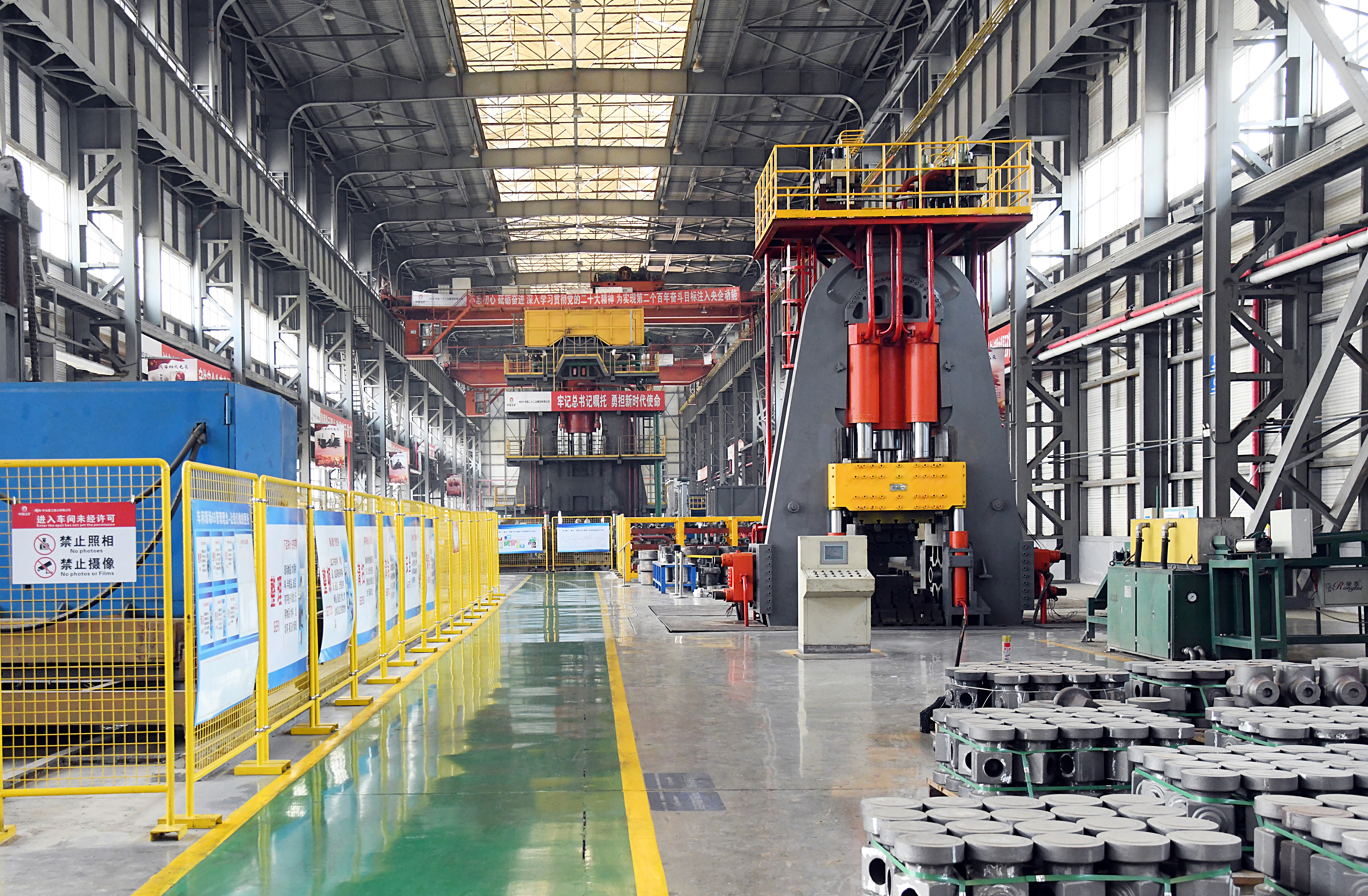 由中國二十二冶生產(chǎn)的重型壓機(jī)及產(chǎn)線擁有預(yù)應(yīng)力鋼絲纏繞、特重型設(shè)備原位安裝、厚板焊接等核心技術(shù),產(chǎn)品涵蓋(多向)模鍛液壓機(jī)、板片成型液壓機(jī)、換熱片壓機(jī)、海綿鈦壓機(jī)、特色中小型壓機(jī)等工藝生產(chǎn)線及配套設(shè)備。產(chǎn)品榮獲國家科學(xué)技術(shù)進(jìn)步獎、國家優(yōu)質(zhì)工程獎、冶金科學(xué)技術(shù)獎、魯班獎等多項(xiàng)榮譽(yù)。